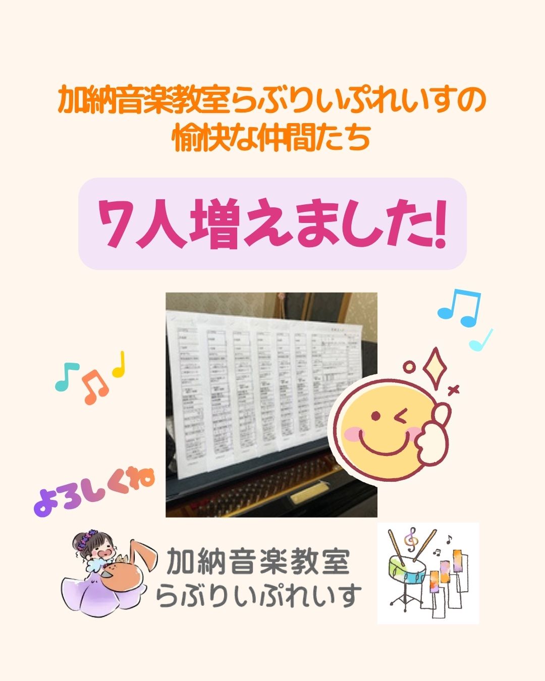 4月から7名の生徒さんと【音楽】します(^^)v